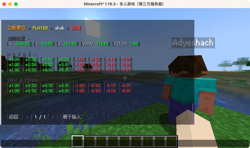 Adyeshach开始主要命令单位编辑下级页面:微调下级页面:微调 对单位的位置和角度进行精确的调整。 微调页面也可以通过 /npc edit <id> move 打开。 微调页面可以在 不接触 单位的情况下对位置和角度进行精确调整,尤其是 盔甲架。