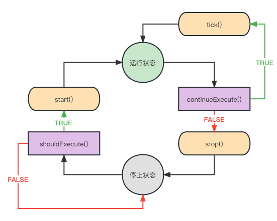 :是否可以开始执行,进行概率判定、搜索附近的玩家。然后把结果缓存起来。continueExecute